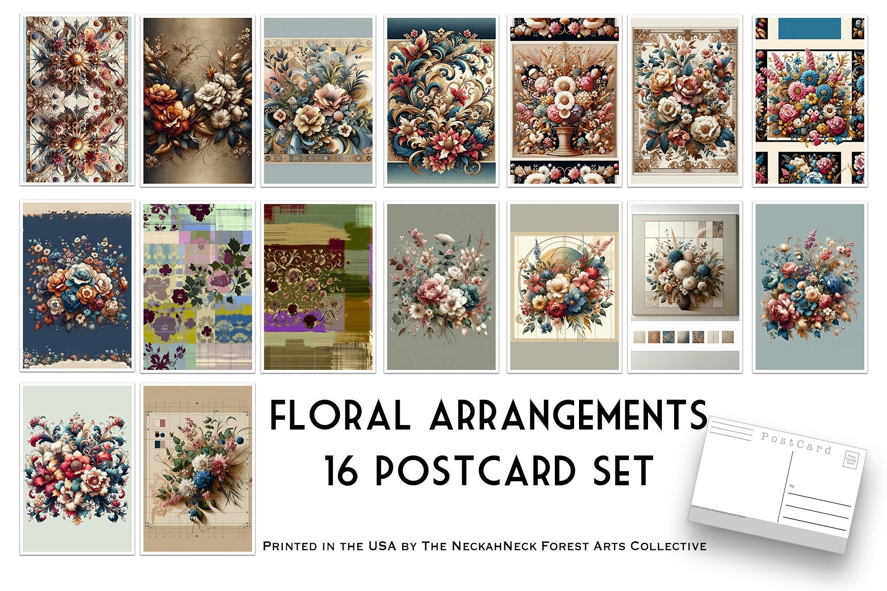 A set of 16 floral arrangement postcards new - bright - floral Illustrations - nature - blank postcards- natural wonders - botanical