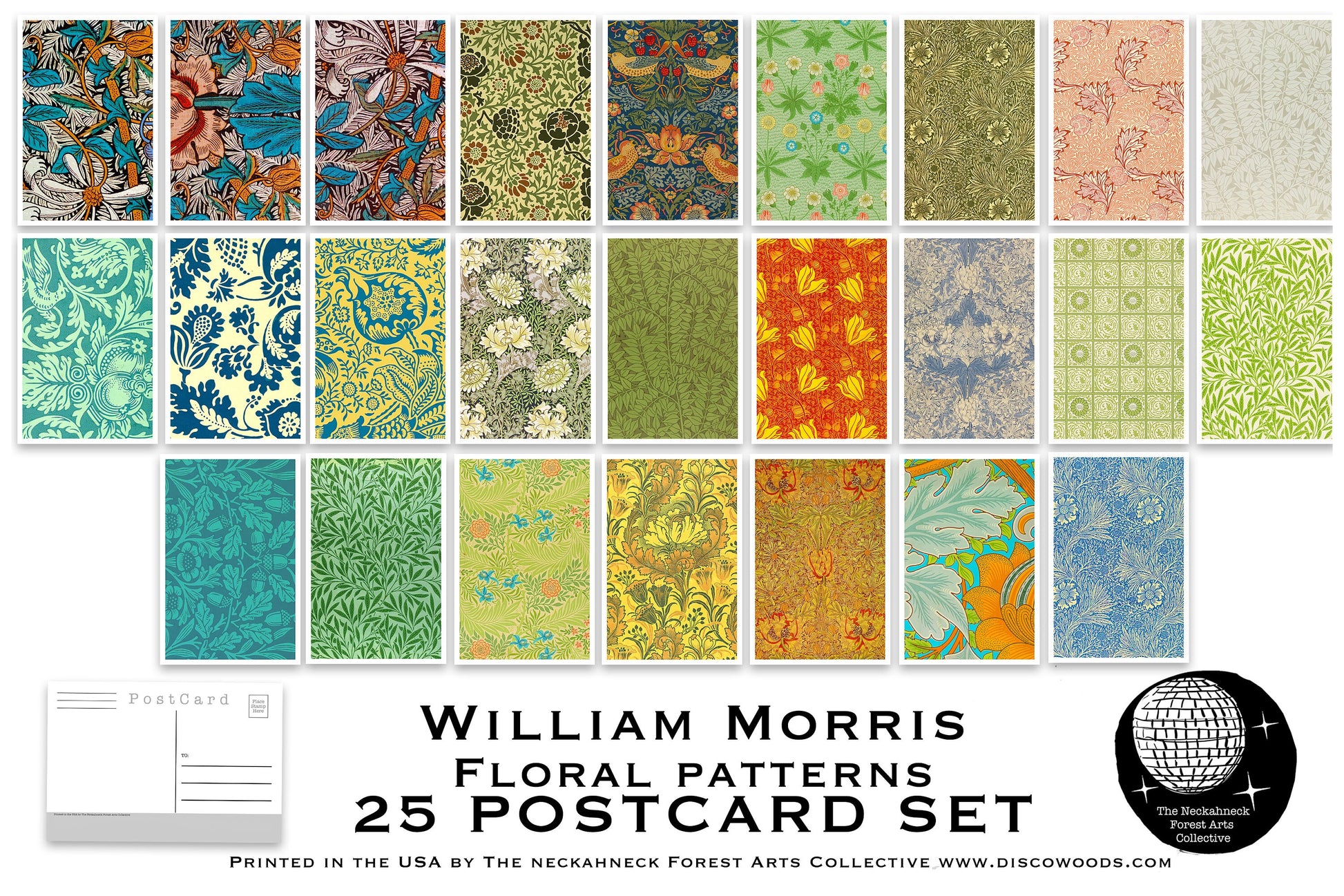 Set of 25 Floral Pattern Postcards based on the artwork of William Morris.