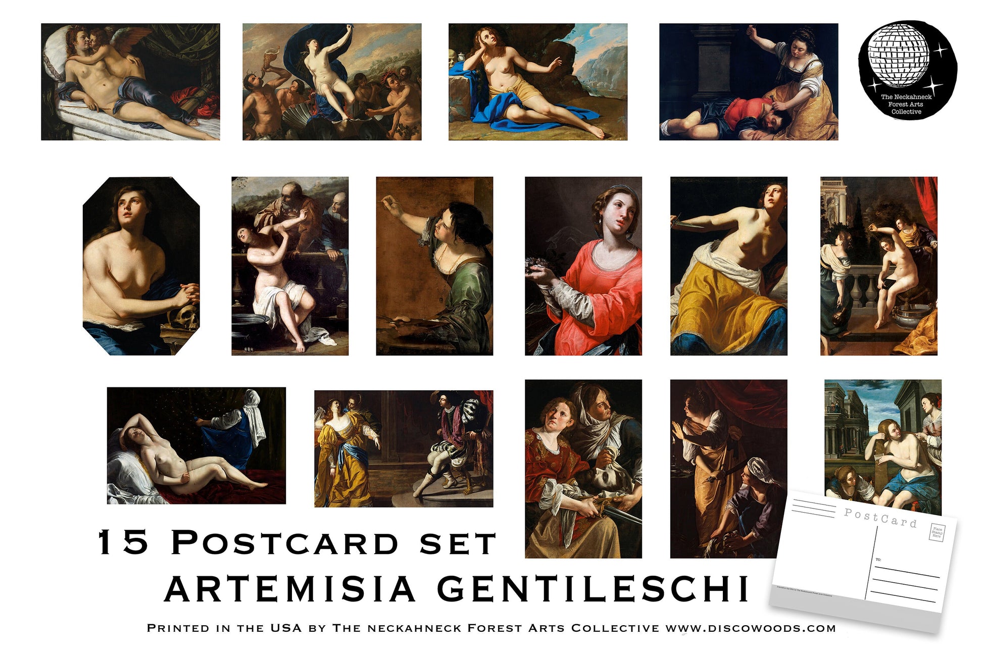 Postcards by Italian-Baroque painter Artemisia Gentileschi. Each card features a different work of art, the title of the work and year it was created is in small print on the back of each card.