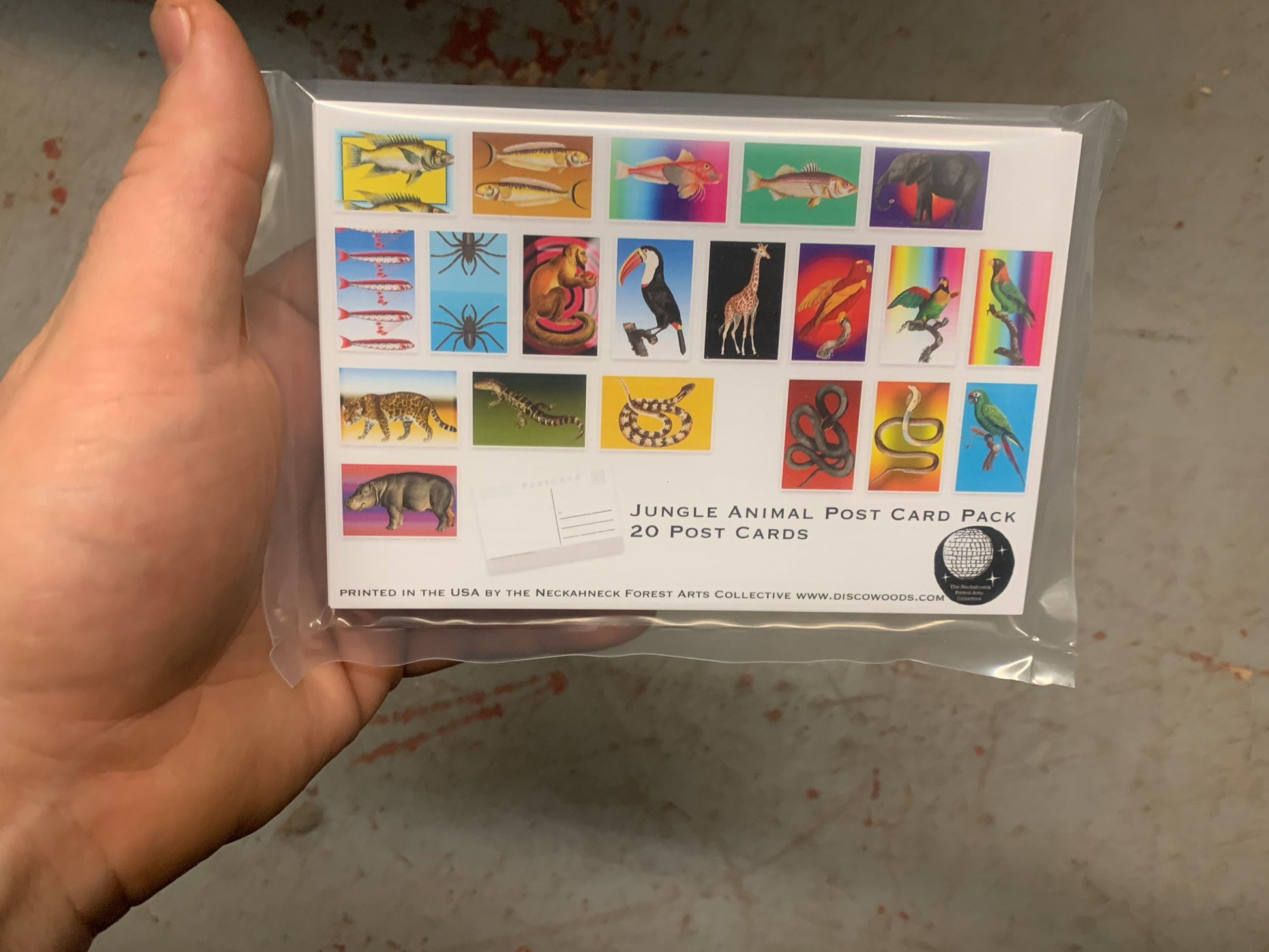A set of 20 exotic postcard pack featuring a variety of jungle animals such as snakes, giraffes, birds and many more!