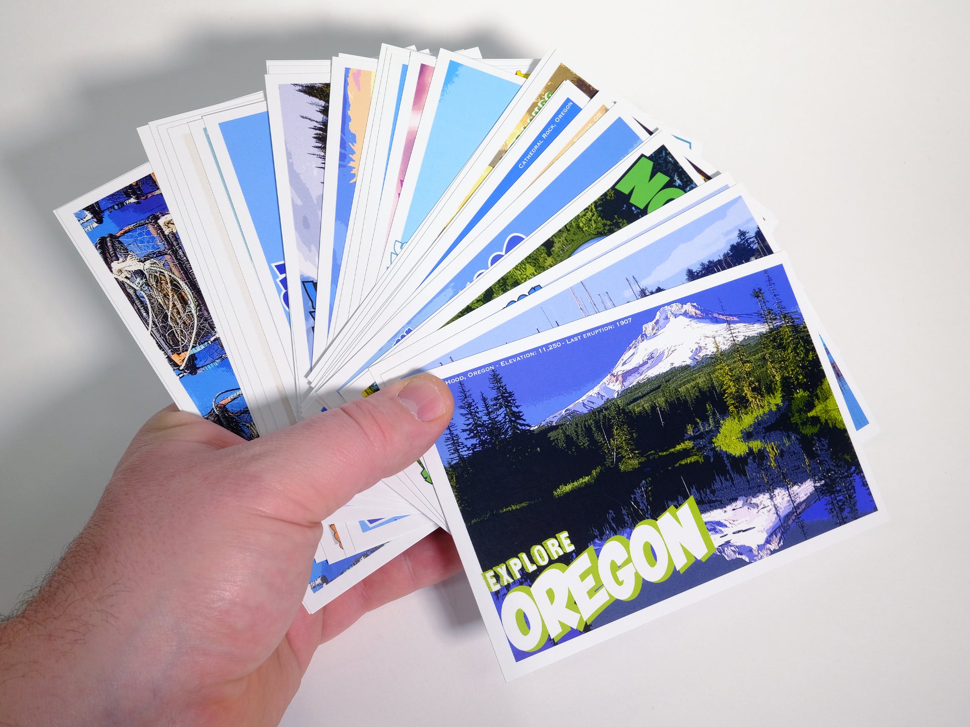 A set of 31 Oregon State Postcards featuring digital paintings of famous landmarks and location. With this set we attempt to capture the spirit of the great state of Oregon.