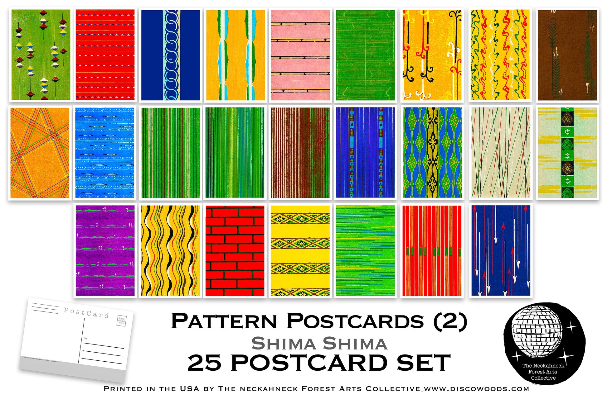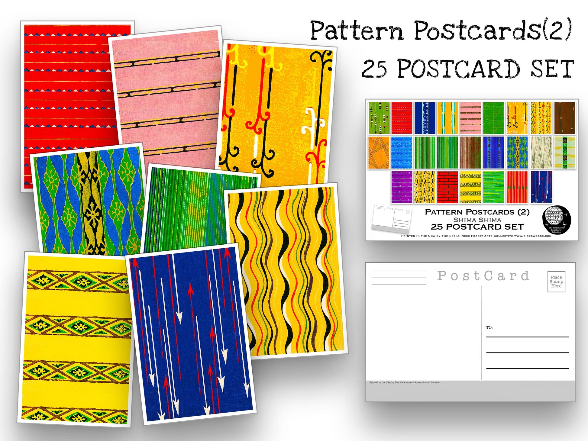 Art Deco pattern design postcards pack (2) based on the artwork of Korin Furuya from his book of wood block prints "Shima Shima"