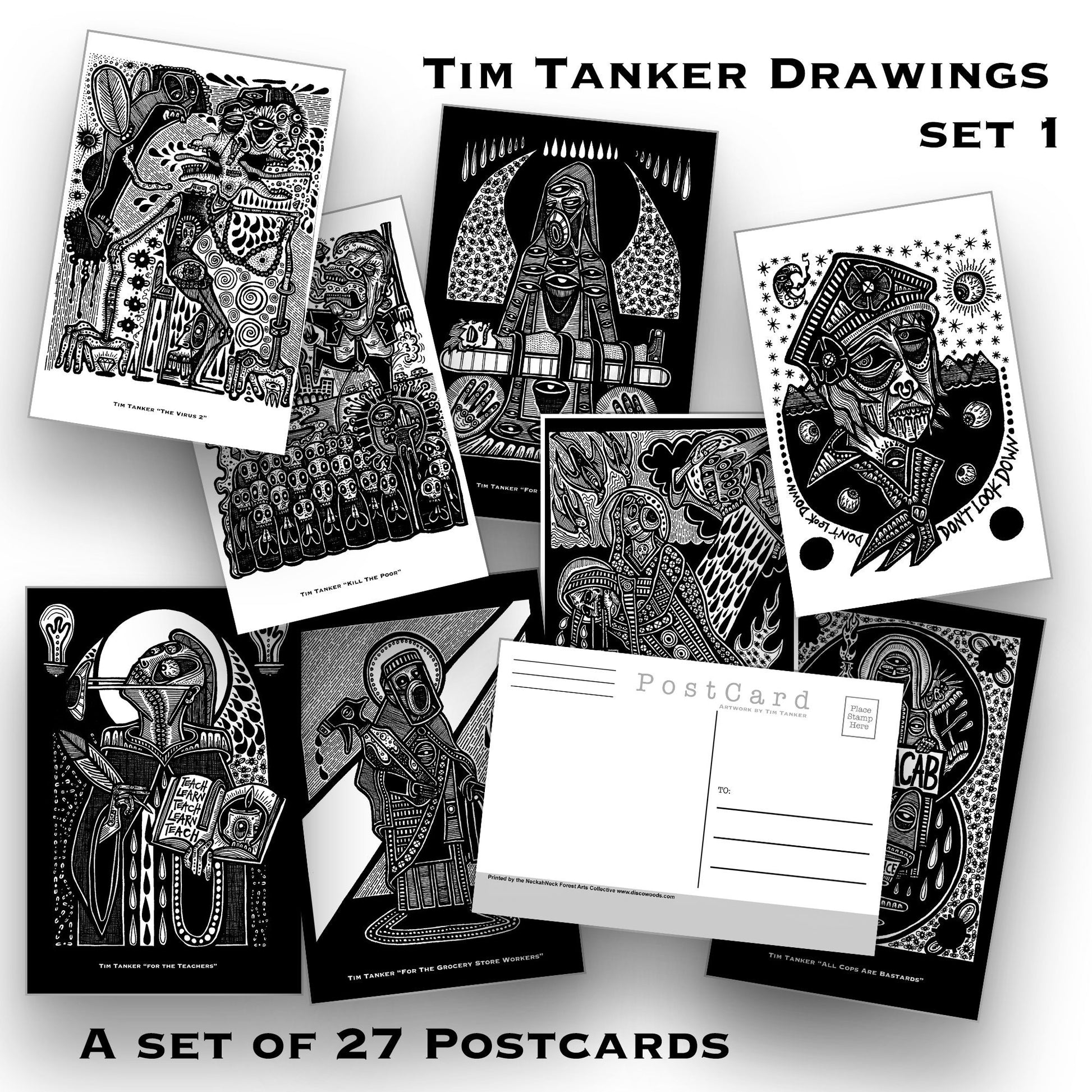 We made this set in collaboration with Woodcut artist Tim Tanker, this post card set contains 27 original artworks drawn by Tim Tanker on subjects covering punk rock, his feelings on the government and the pandemic. Relevant beautiful and extremely punk rock. Give the set as a gift or hang them on your wall