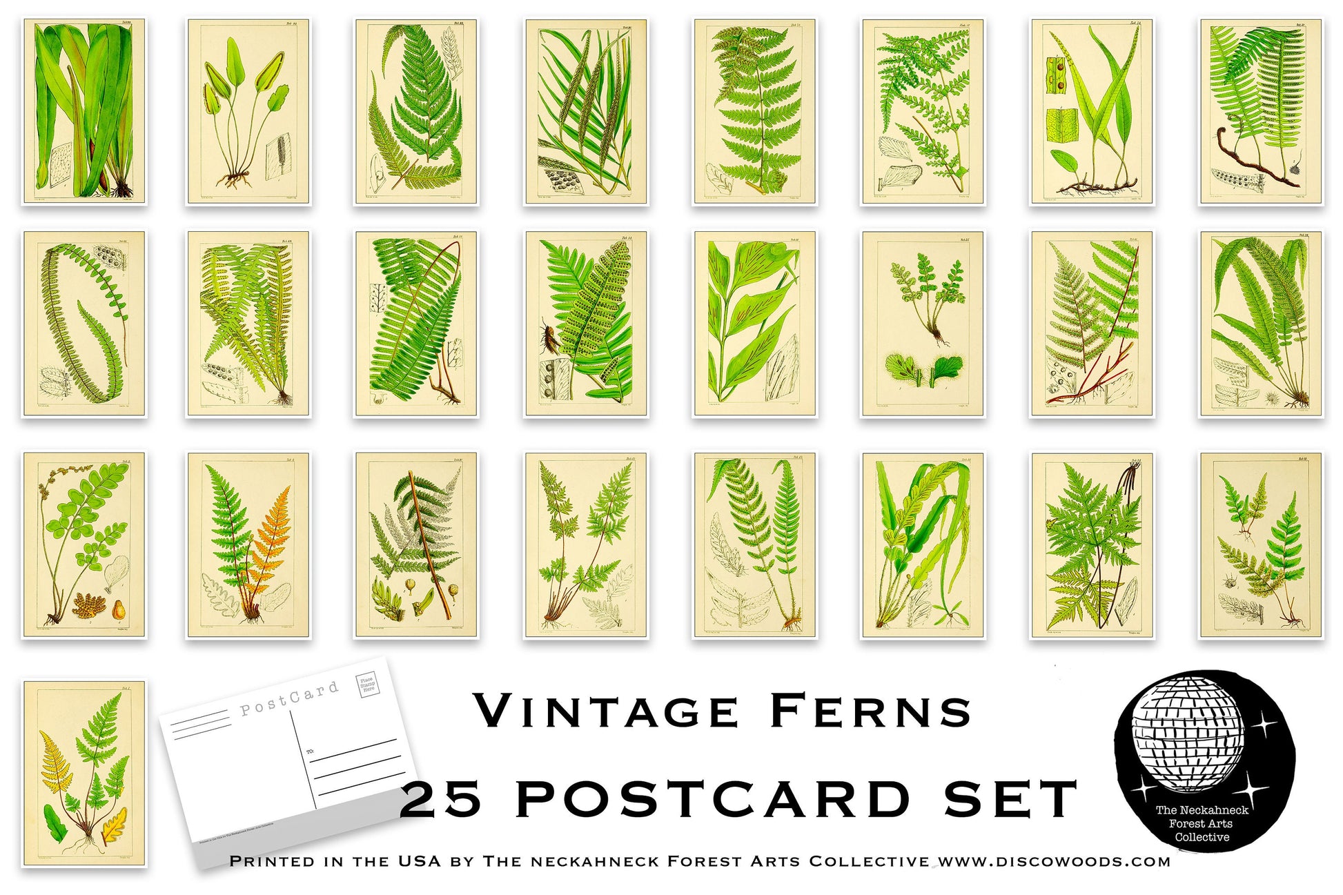 A set of 25 Vintage Fern Postcards - Botanical Fern Drawings - Natural Wonders