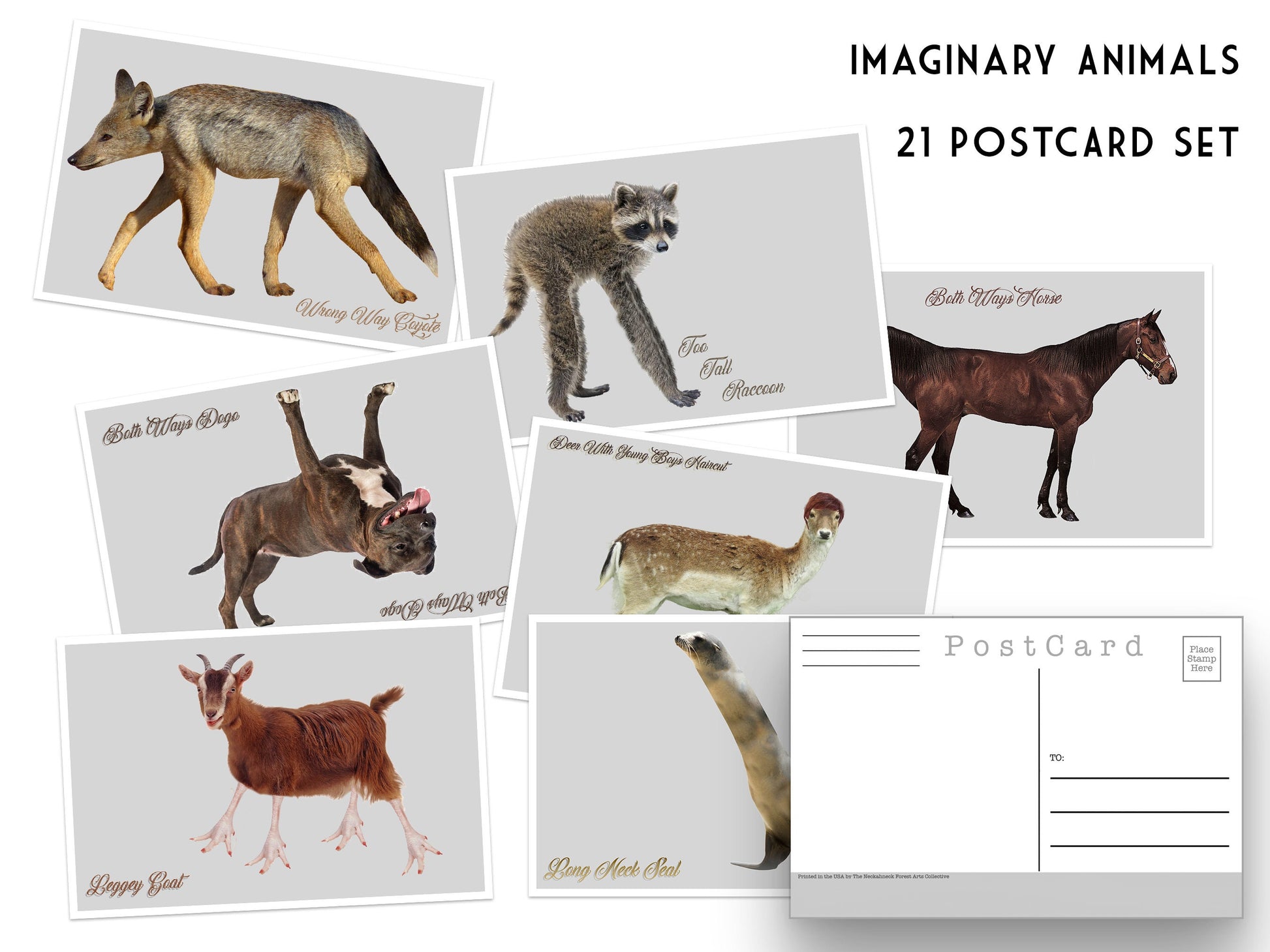 A set of 21 Imaginary Animal Postcards. Fun for kids of all ages! These funny wrong animal postcards are great for decoration, collaging, scrapbooking, wall art or sending in the mail! Send someone something they never imagined!